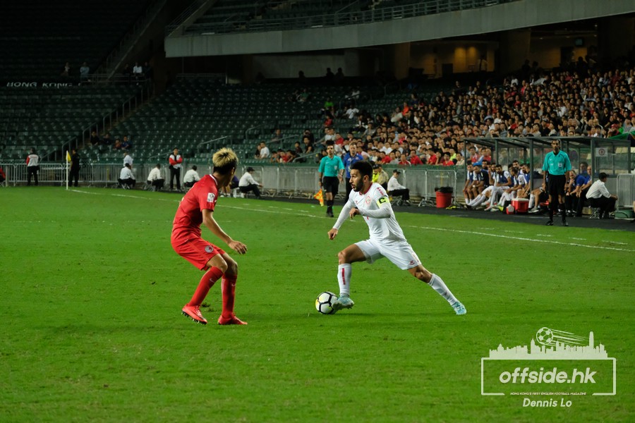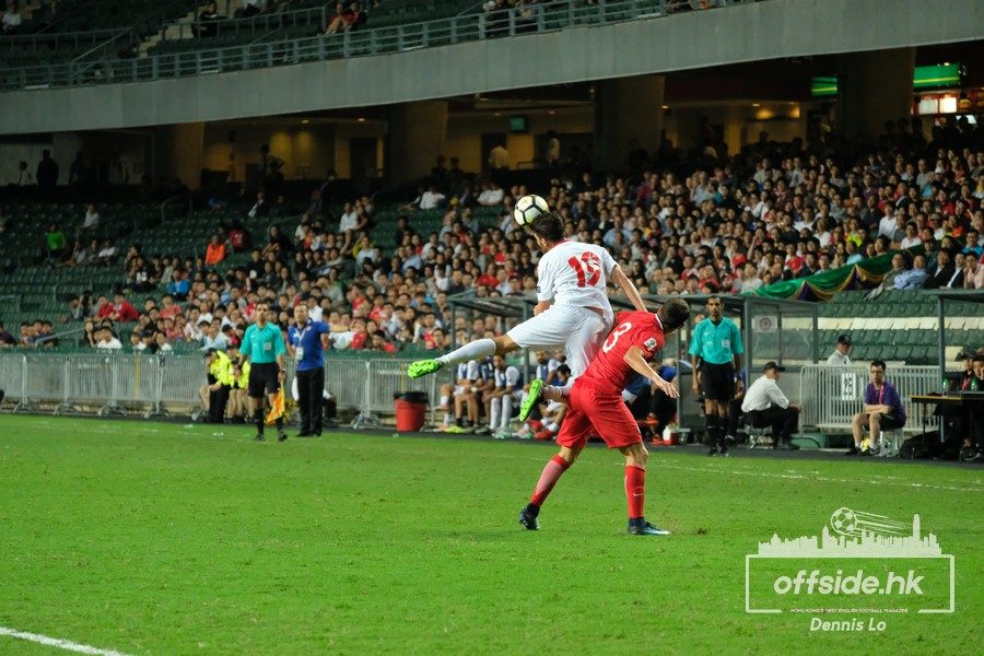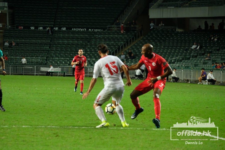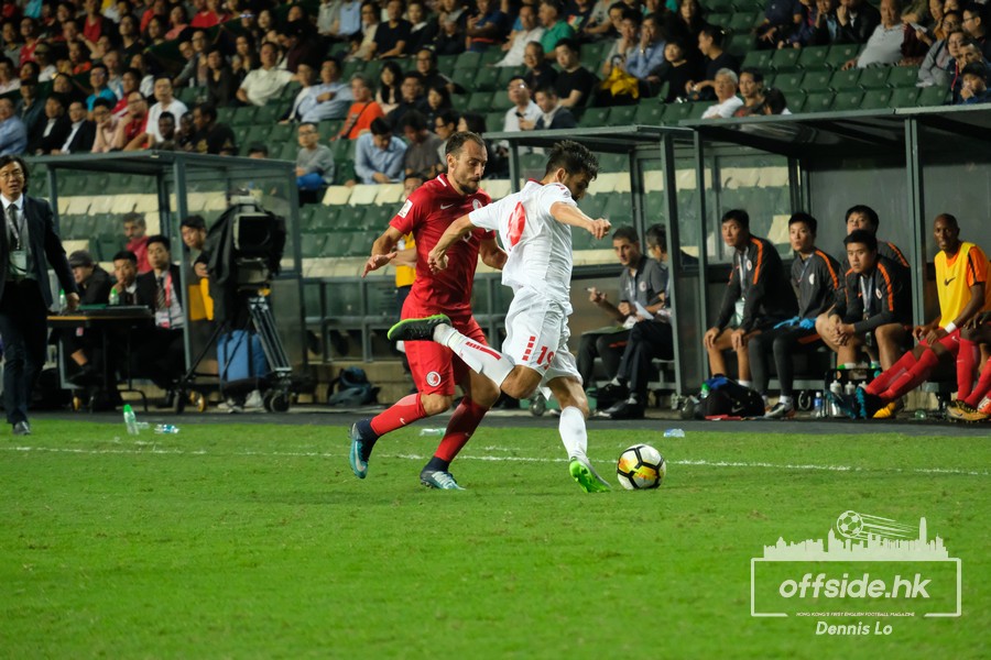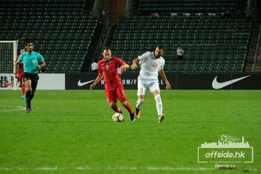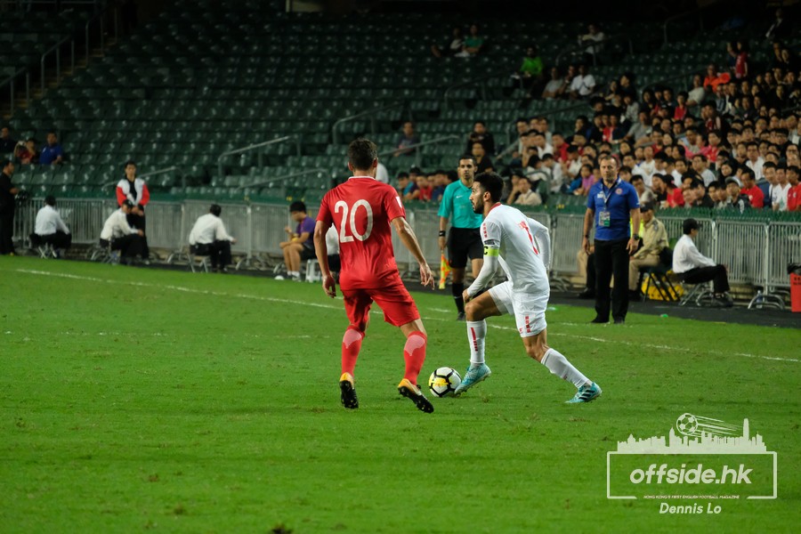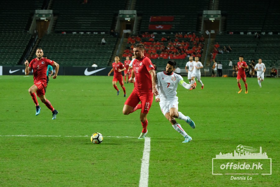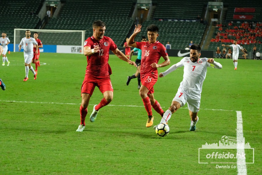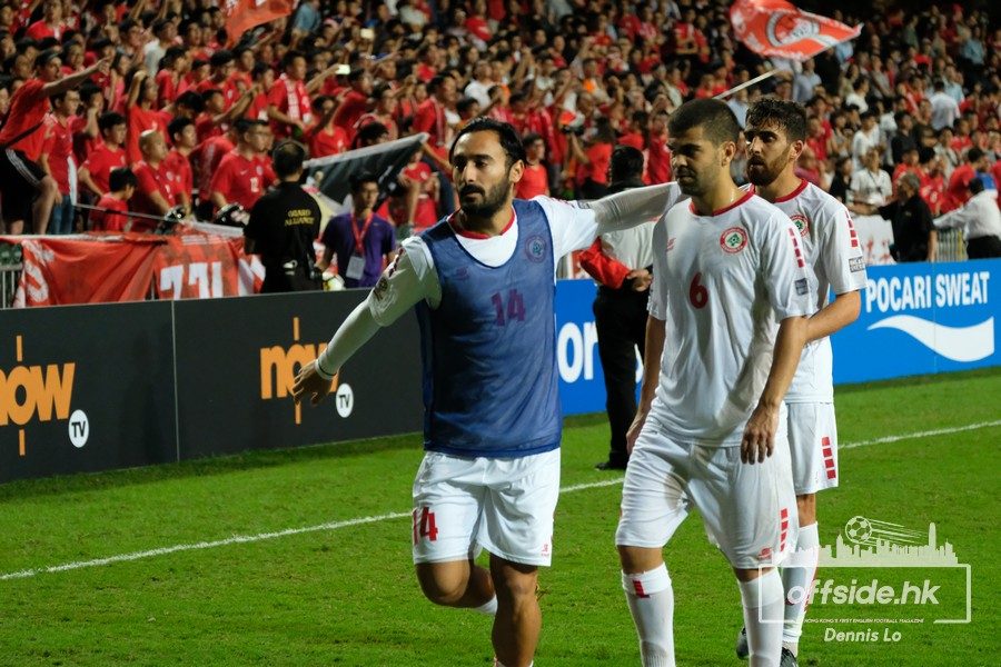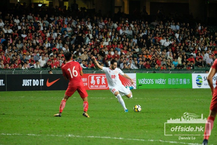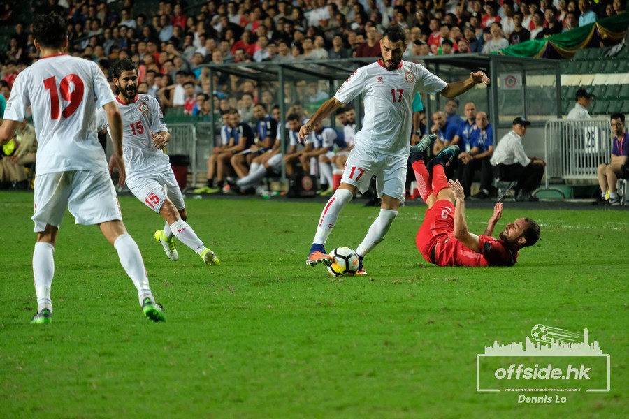Despite Hong Kong’s dominance, Lebanon captain Hassan Maatouk remained a consistent threat in counter attacks. His pace and agility made the evening of Fernando Recio increasingly stressful, as he was frequently targeted via overhead passes. At the 10th minute, he cut in from the left side, but Andy Russell stopped his shot.