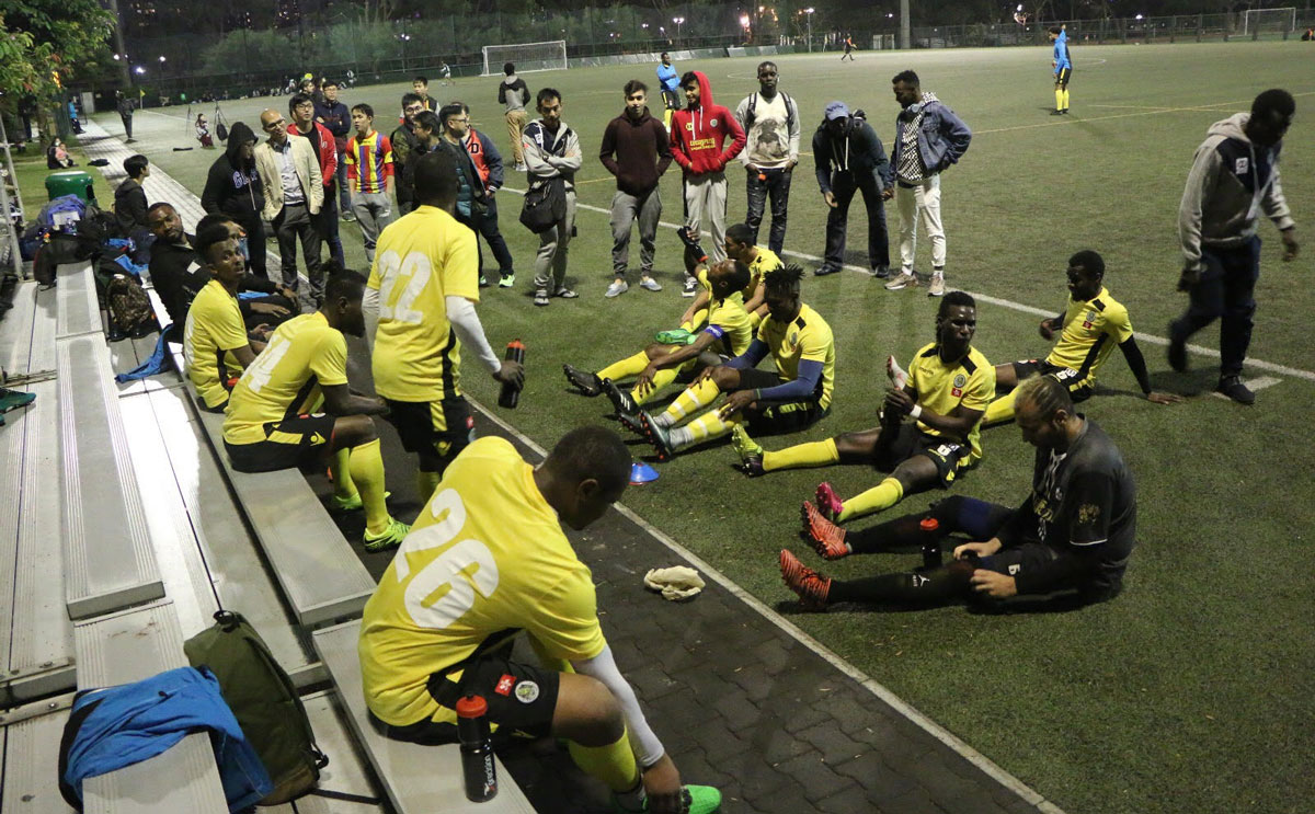 For those who perhaps have not heard yet of All Black FC, the club is mainly made up of asylum seekers and ethnic minority players in Hong Kong, who play and train under the All Black banner as a means to form a tight-knit community in a city that, for all its glitz and glamour and progress, remains very much behind in the discussion of prejudice and human equality. Barred from playing in the local leagues due to their legal status, All Black FC have achieved remarkable results in friendlies against fellow amateur sides as well as Hong Kong Premier League outfits. One of the founders, Medard Koya, and coach Daddy instilled in their players that football can bring more to their lives beyond their marginalized status, and it was them who stood on the touchline guiding the team against Happy Valley that night.