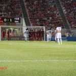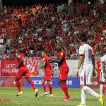 Only after Kitchee winger Christian Kwesi Annan replaced exhausted Jaimes McKee, Hong Kong seemed to find back into the game, increasing the speed of their attacks. Unfortunately, Xu Deshuai had a rather disappointing performance on the right side, leaving most of the work to the other two forwards. When Qatar scored the third goal in the 85th minute, the defeat seemed to be unavoidable. Nevertheless, the Hong Kong fans were still totally committed to the game and cheered for their team. And that might have actually made the difference. Just two minutes later, Festus Baise headed the ball towards the goal, where it found Bai He, who just had to deliver it into the back of the net. Pumped with new adrenaline, Hong Kong kept pushing to the front and the Qatar team started getting a bit nervous. After another corner kick by Cheung Kin-fung, Karikari got the ball and scored with a sensational strike on the turn. Suddenly, everything seemed to be possible again during stoppage time, but in the end it was too little, too late: Hong Kong lost 2:3, but they also scored their first goals ever against Qatar.